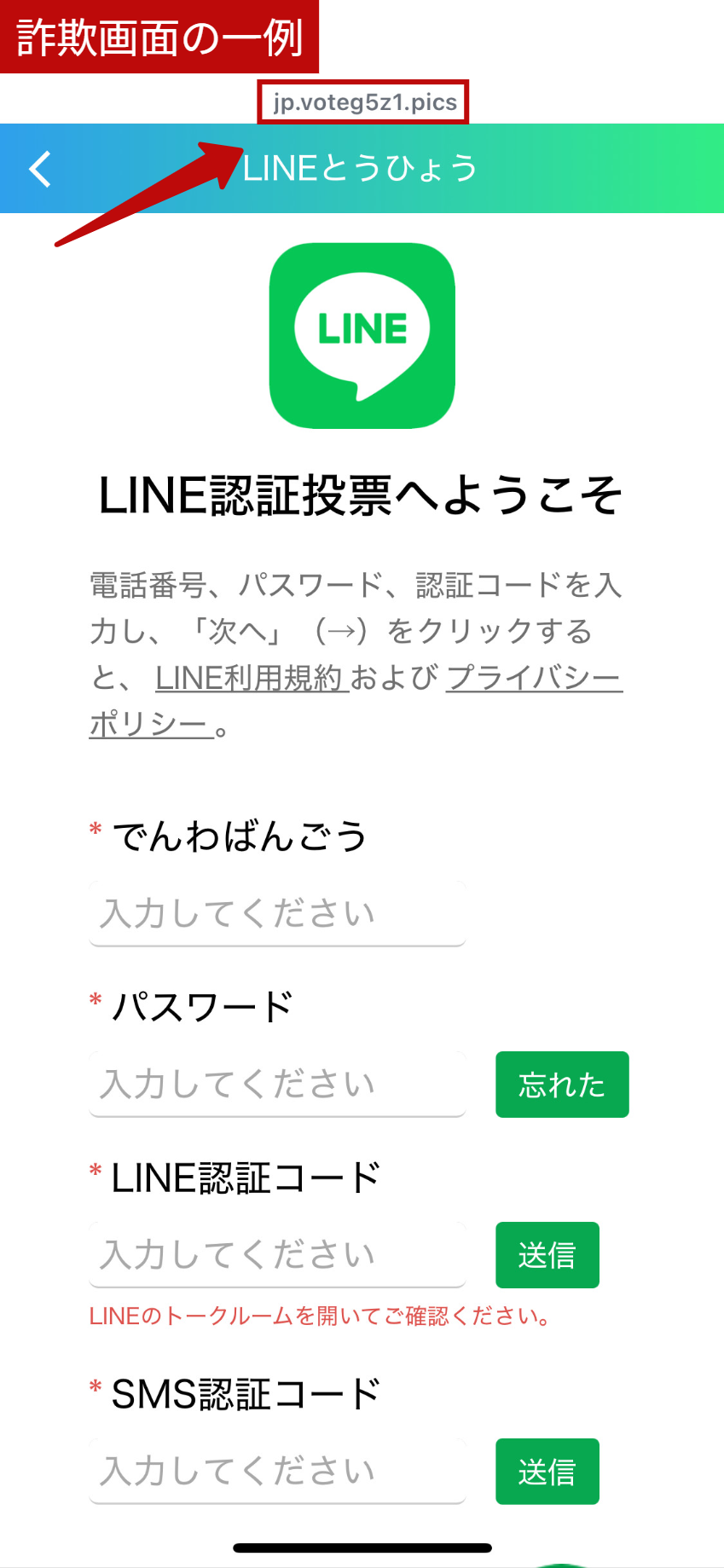1. 偽の投票画面でLINEアカウント情報の入力を促される