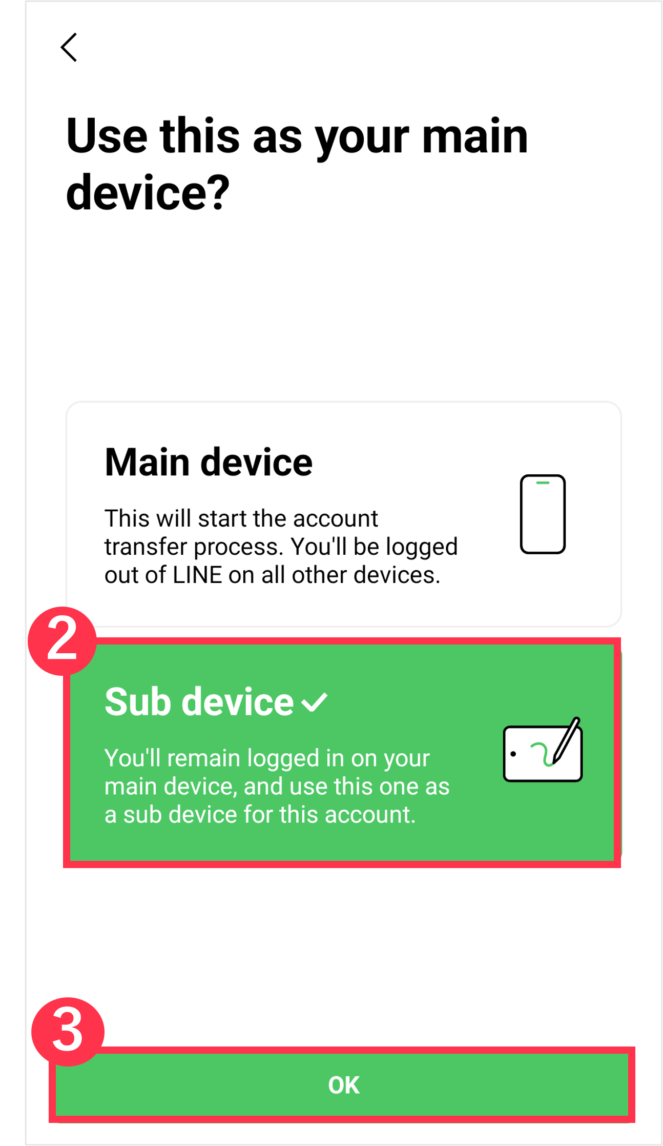 You can use the LINE account created on your main device to log in to an iPad or Android device as a sub device.