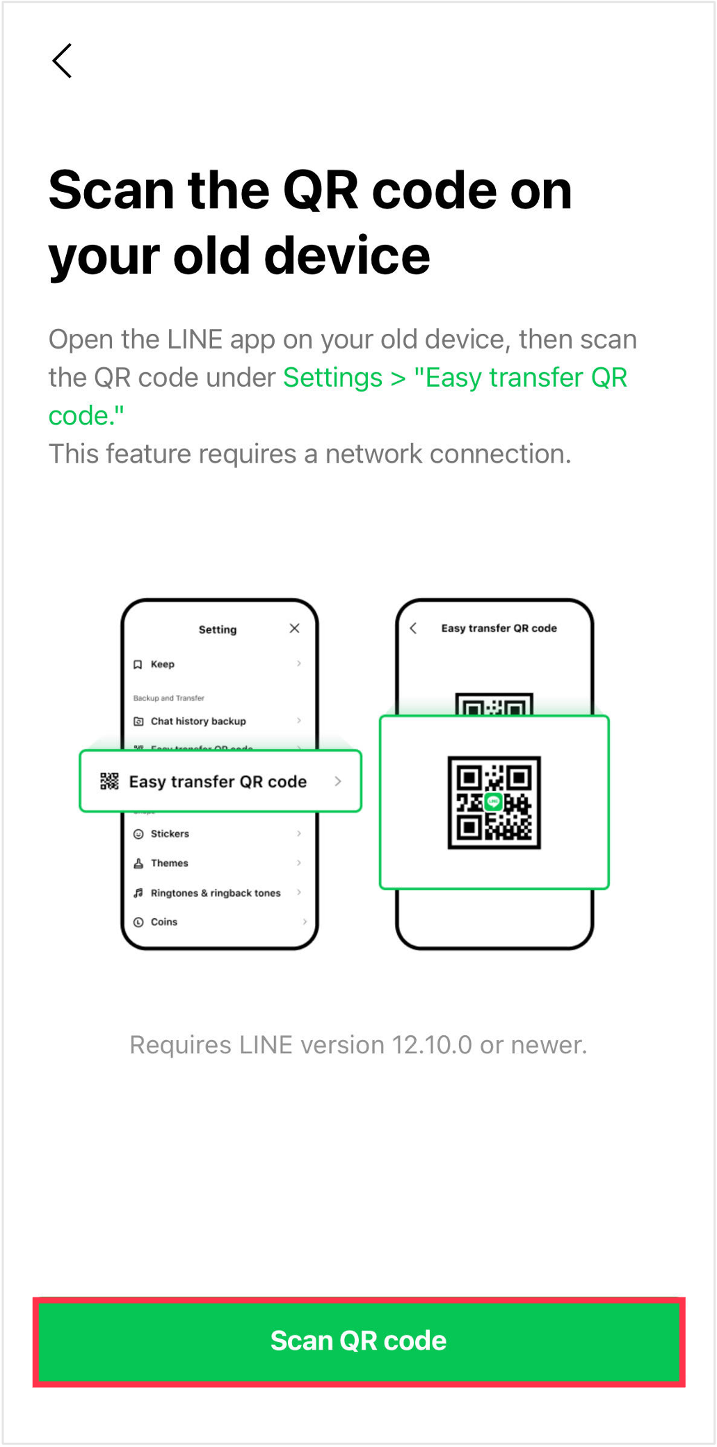 To transfer your account with a QR code, see the steps below.