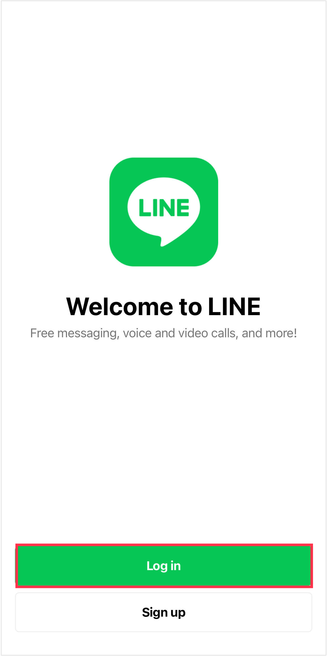Open LINE on your new device and tap Log in.