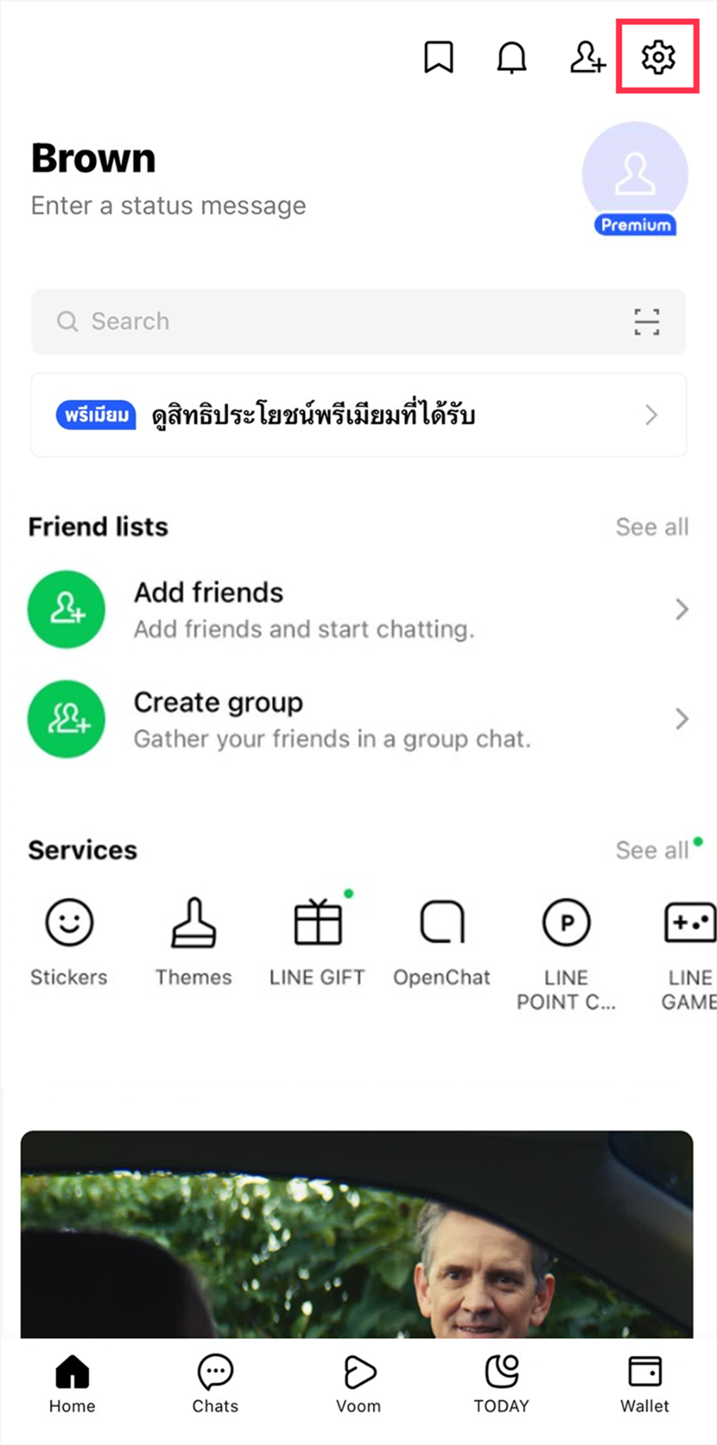 Open LINE on your previous device, and tap the Home tab