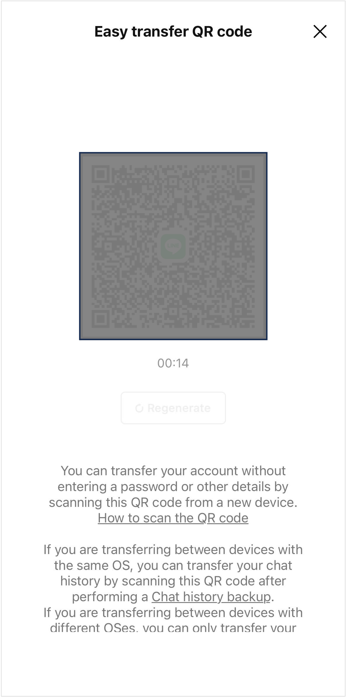 - If a QR code isn't shown, check if LINE has been updated to the latest