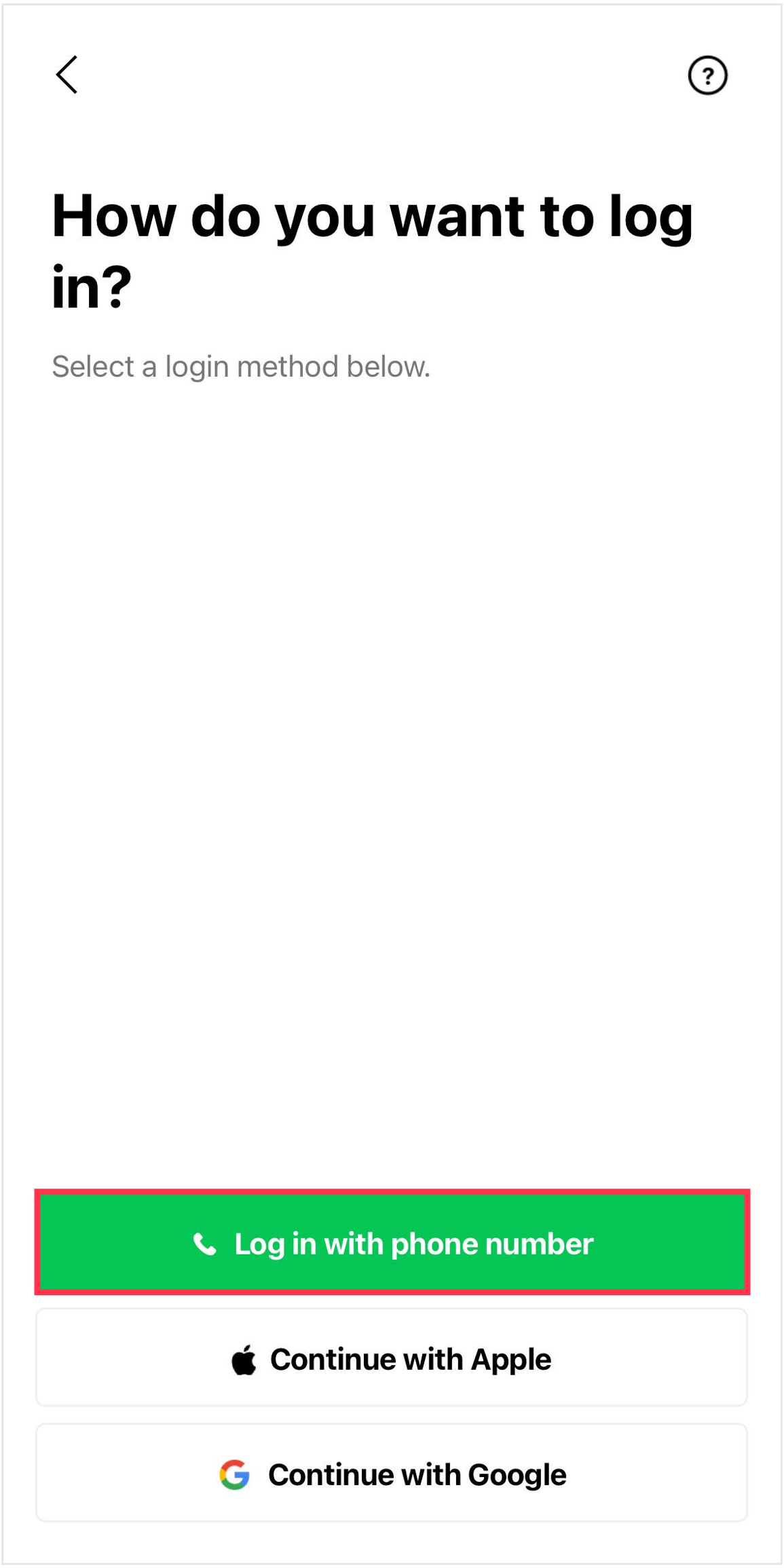This step explains how to log in with your phone number.