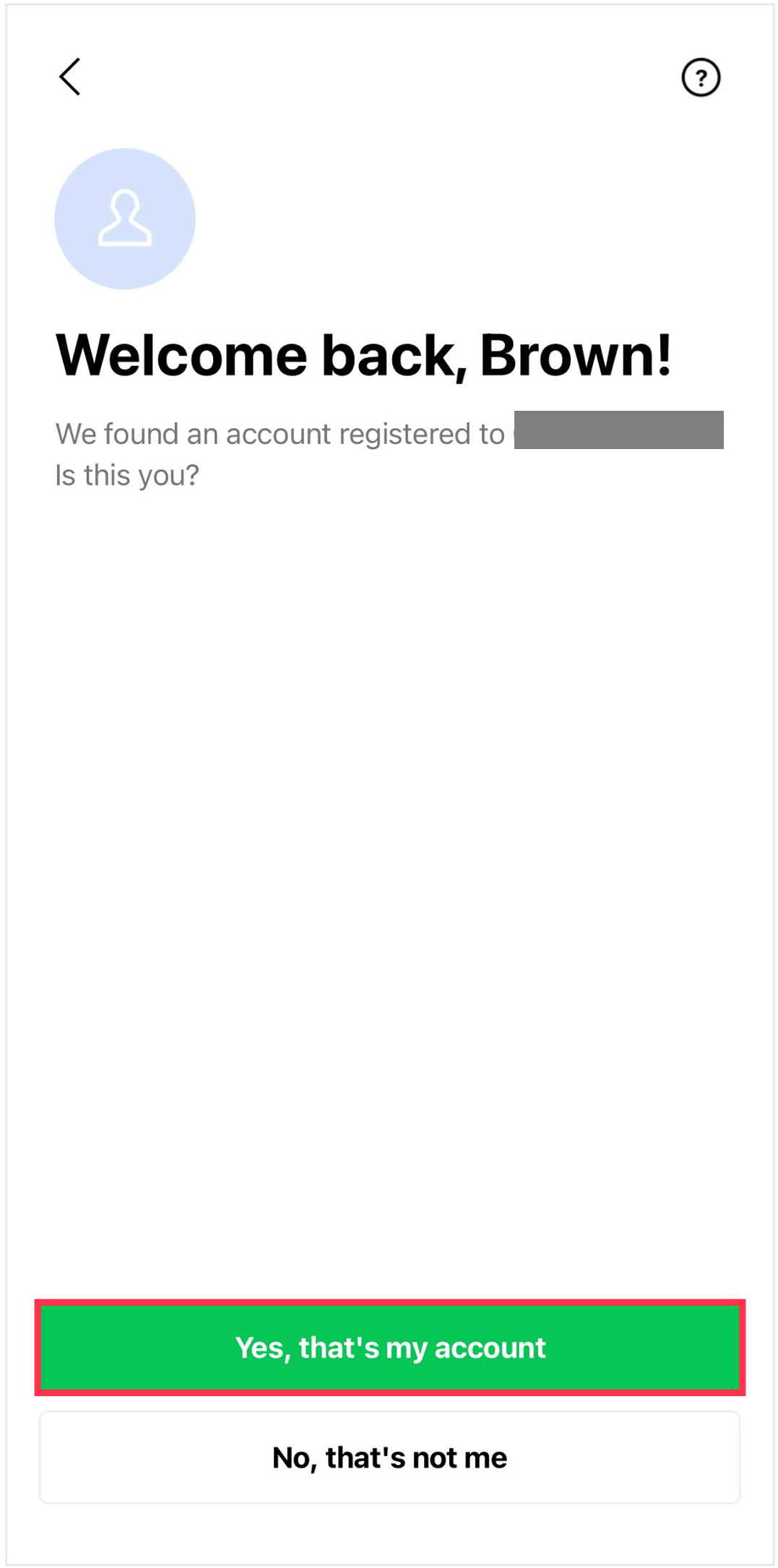 information is correct, select Yes, that's my account to