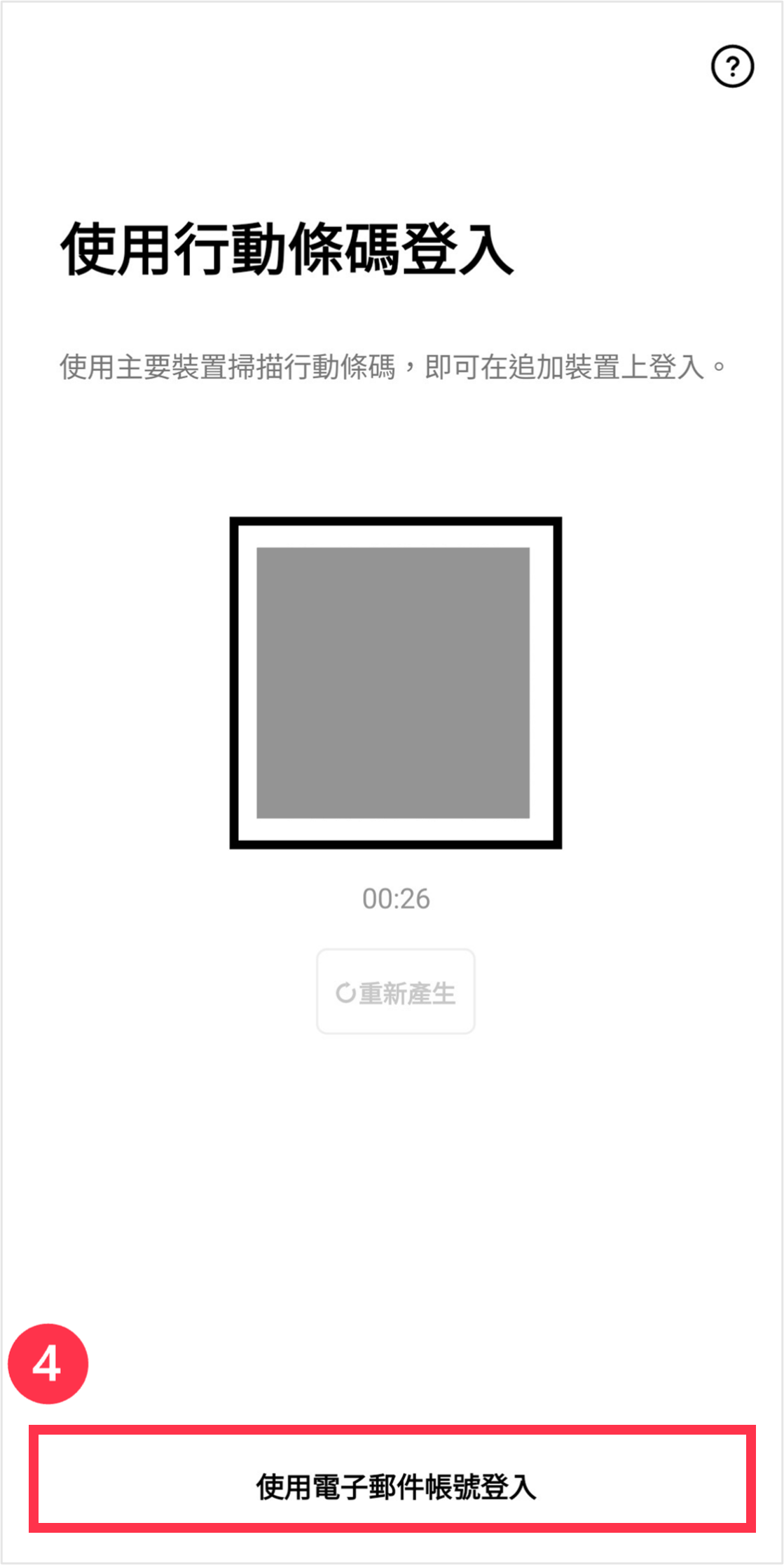 輸入LINE帳號內設定的電子郵件帳號及密碼以執行登入。